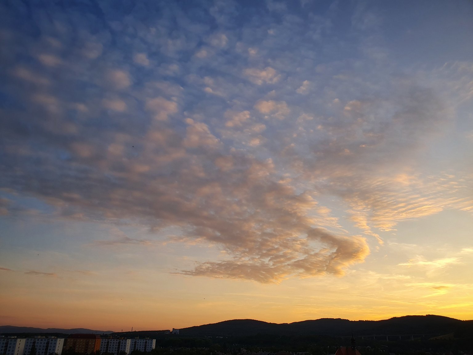 Skoro jasno, vítr 1 m/s proměnlivý. Vlhkost 38%. Max T dnes 29,5°C