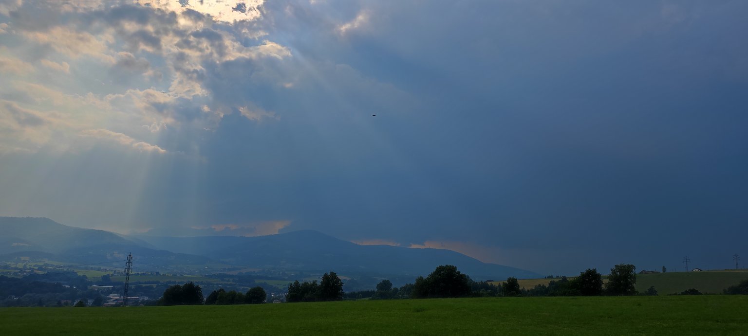 30,8°C, Vzdálená bouřka. Cumulonimby v dálce, už hřmi.