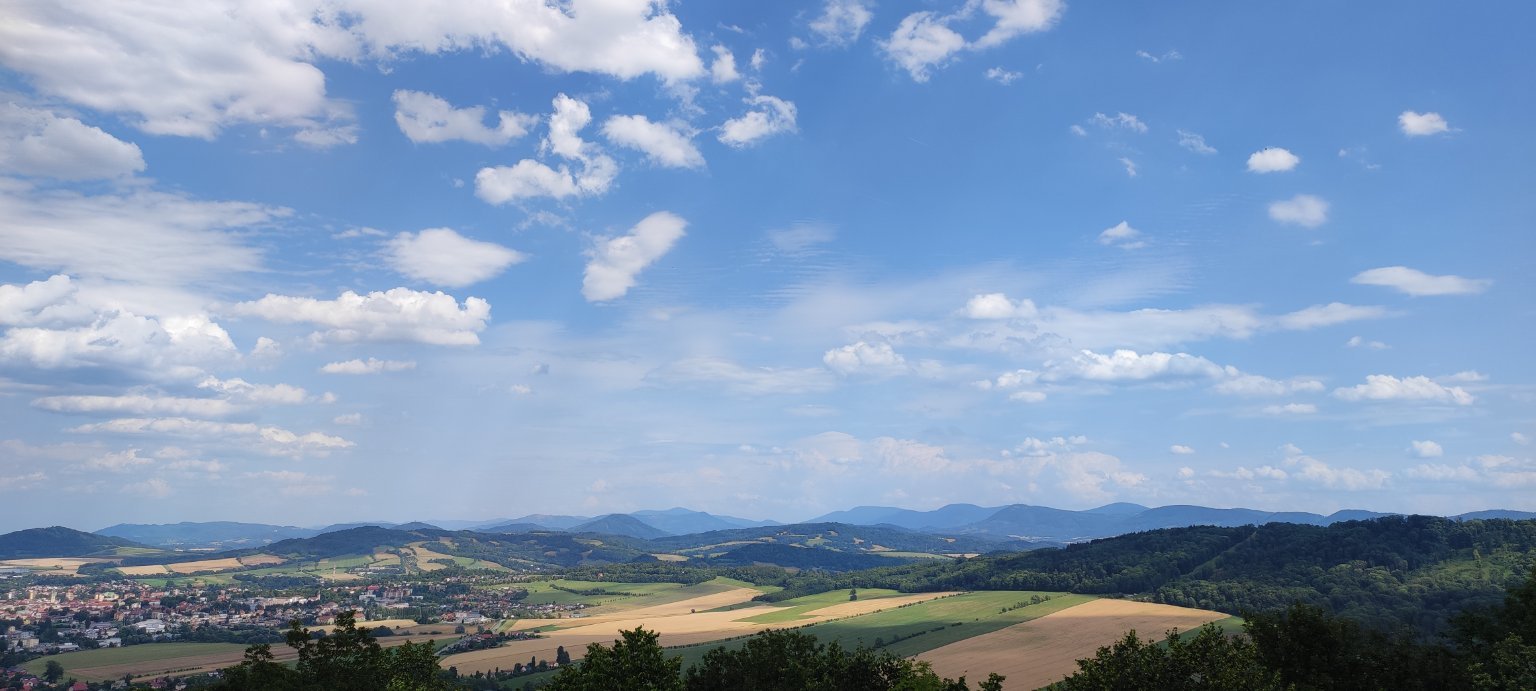 -°C, Oblačno. Nádherný výhled z hradu Starý Jičín.