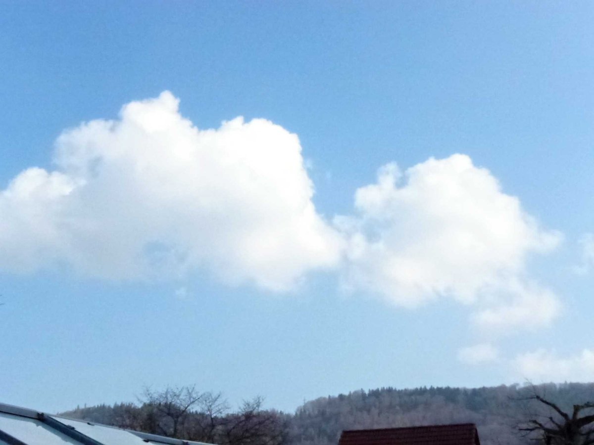 Už se to kupí, ale slunko pořád svítí. Tlak 1016 hPa, vlhkost 42%, vítr V,1,8 m/s.