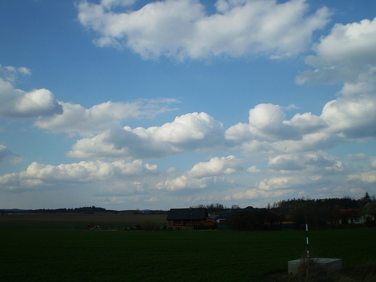 Po obloze se honí nádherné mraky. Slunko se ale neschová. Je hezké počasí, pohoda.