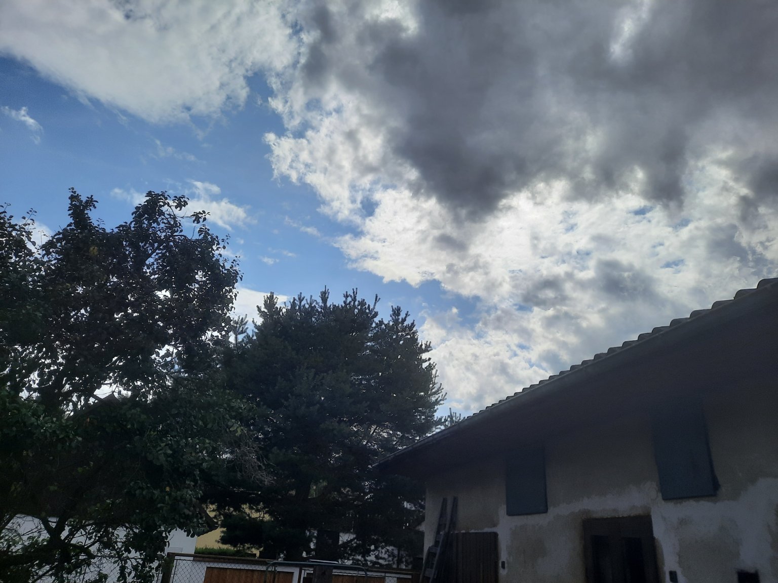 Vlhkost 71%, vítr mírný SV, 3,6 m/s, v nárazech až 6,7 m/s. Skoro zataženo, prší z přeháňky. Už skoro 10 mm za dnešek.