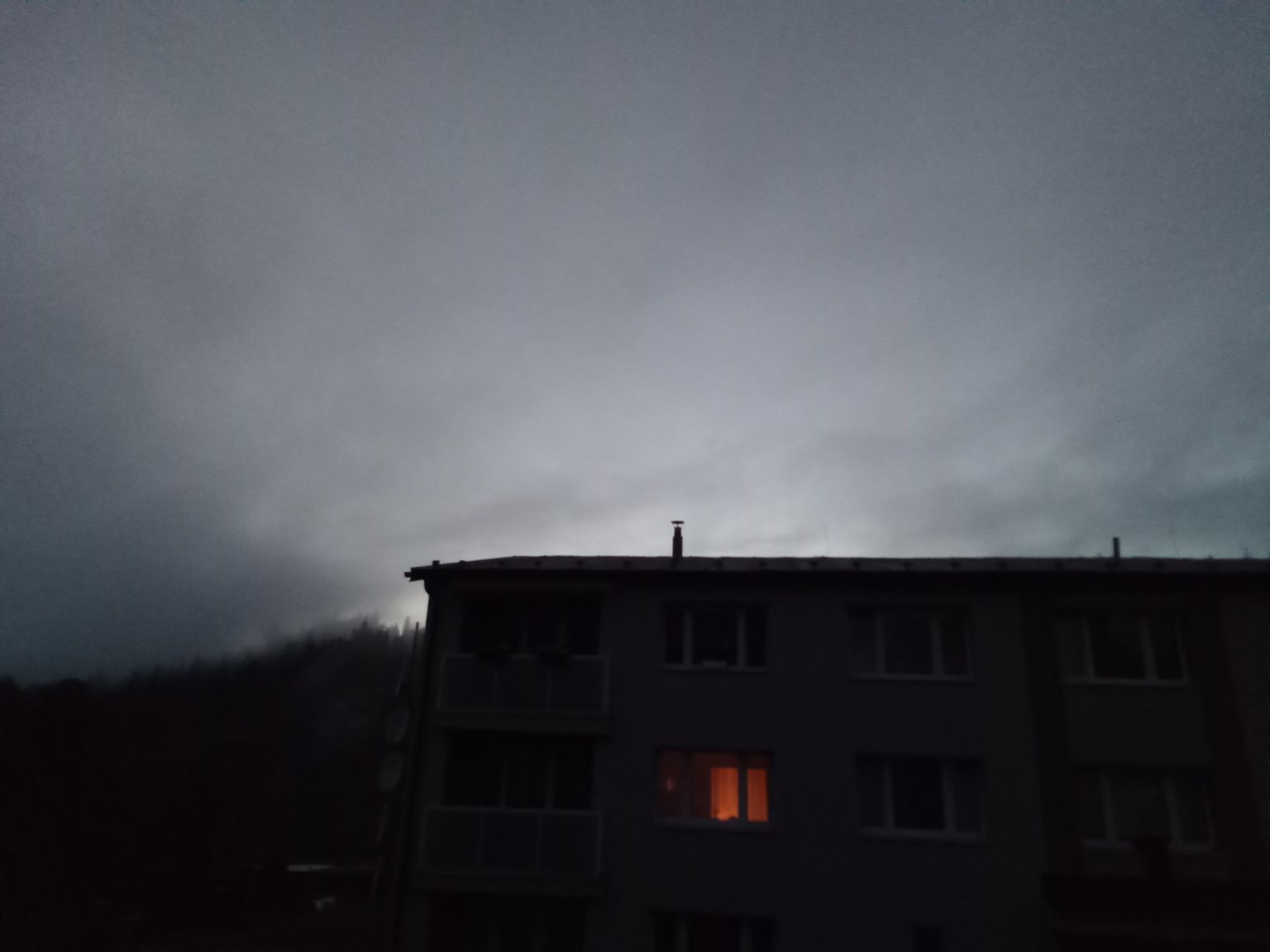 Oblačno, zbytek mini přeháňky. Teplota: 16.4°C, Vlhkost: 58%, Tlak: 1012.5 hPa (stoupá), Srážky(dnes): 4.2 mm.