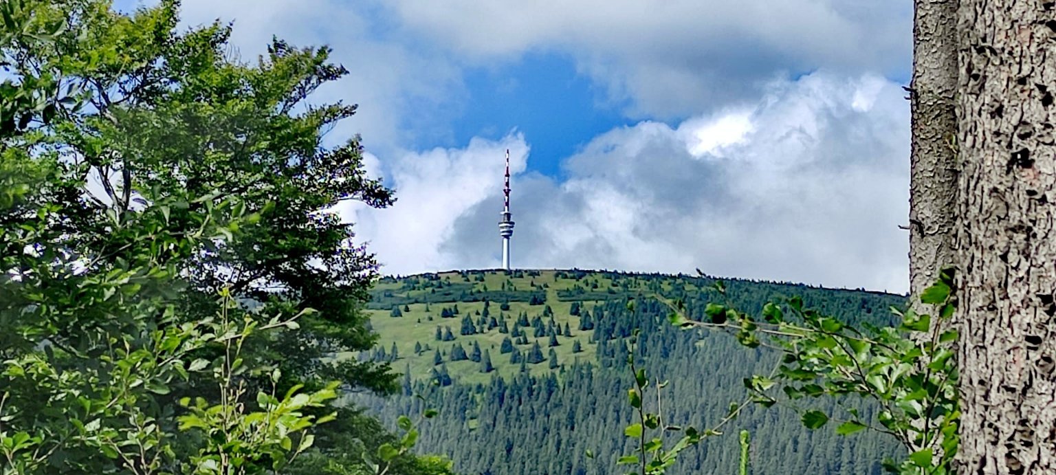 Vysoká a střední oblačnost, trochu cumulů. Příjemně teplo. Větřík