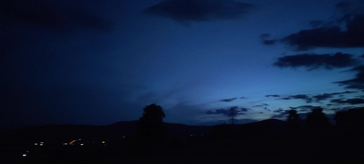 Bezvětří, vlhkost 68%. Před rozbřeskem.