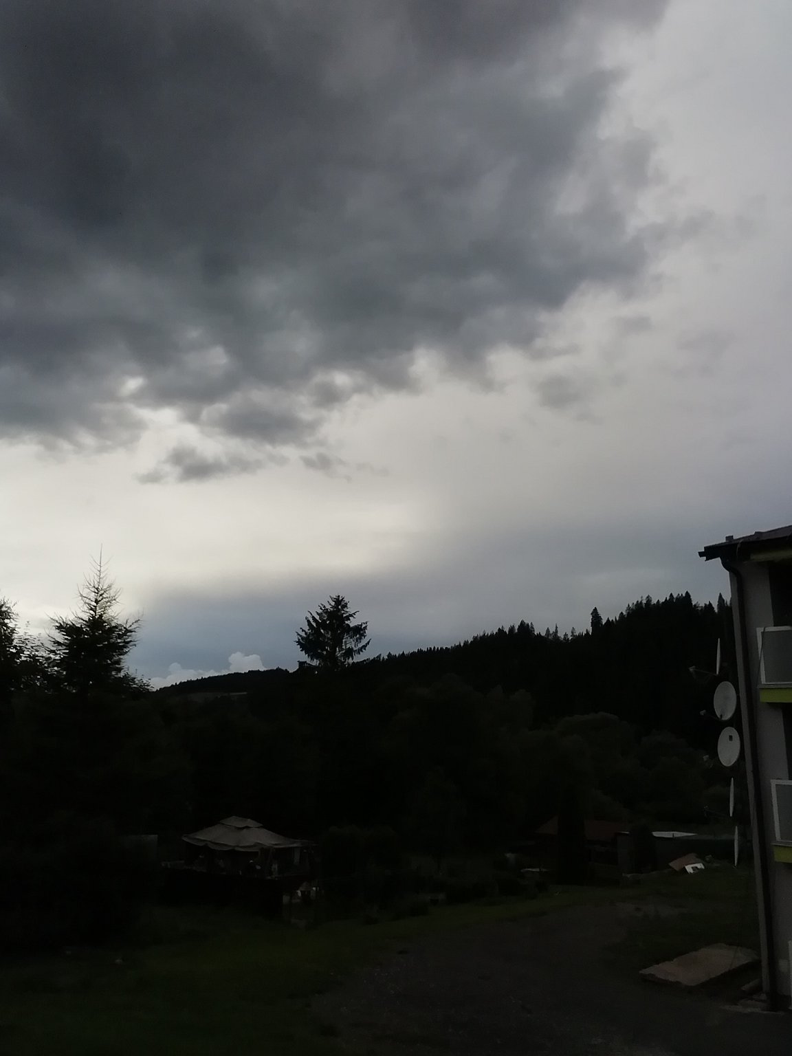 Rozpadající se bouřka na severu. Silný vítr.