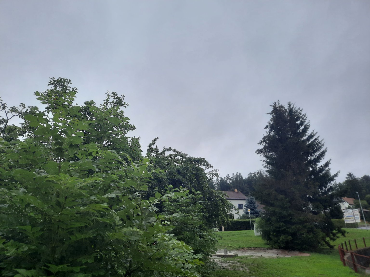 Trvalý déšť přešel v občasný a přeháňky. Mírný vítr. Noční teplota byla 13,6°C.