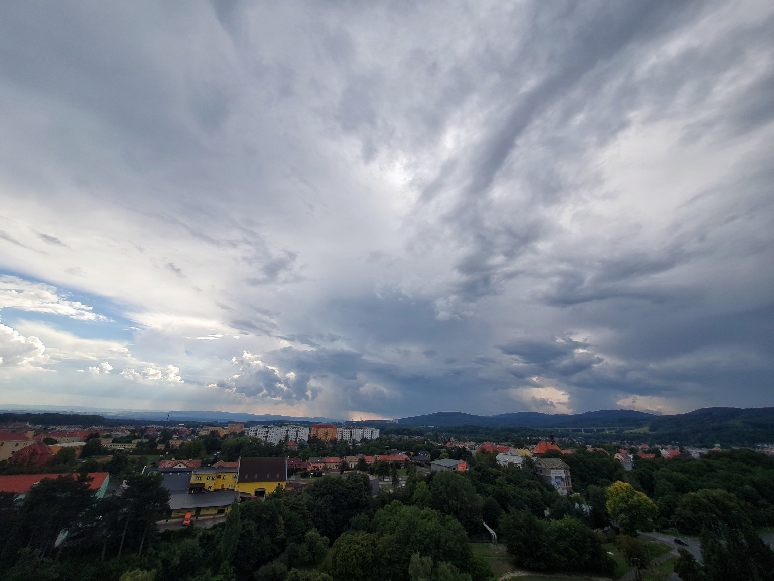 Aktuálně převažuje většinou skoro zataženo až oblačno a mírná dešťová přeháňka a fouká většinou slabý až mírný vítr