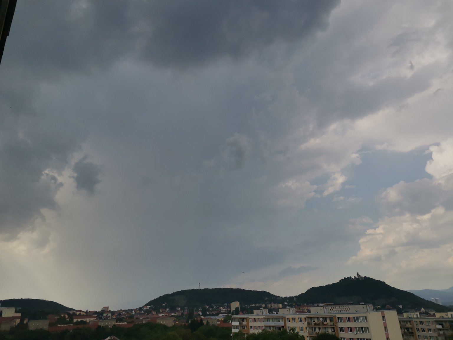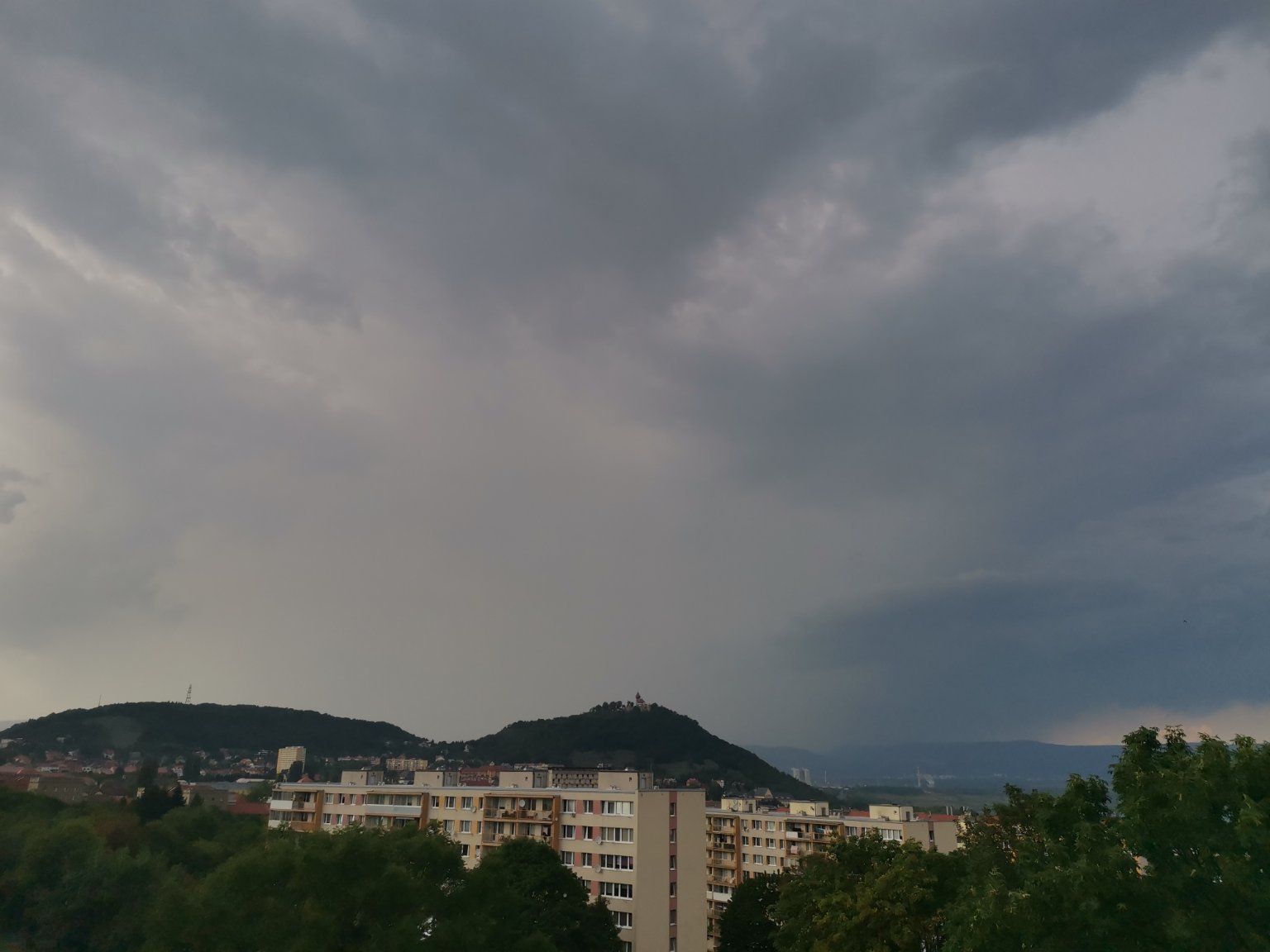 Jenom slabounce prší. Hezky v díře mezi vzdálenými bouřkám a slabouckou nepovedenou přeháňkou na jihu