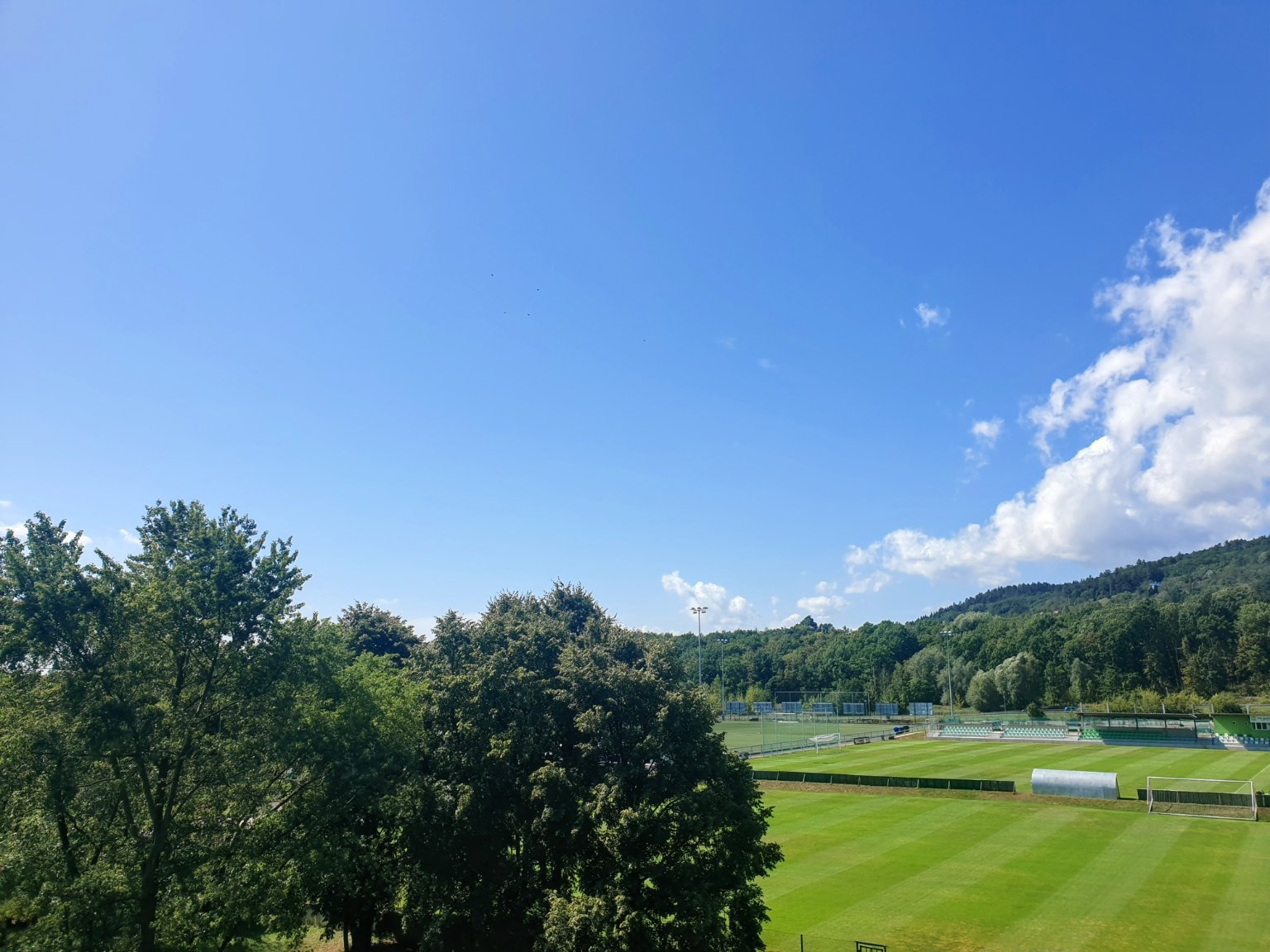 17,5°C, Vzdálená bouřka. Potok Glembiec zatopil cestu, jsou tam trubky, ale asi jsou ucpané...
