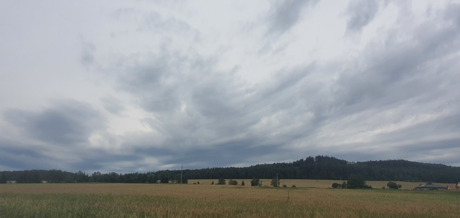 Aktuálně převažuje většinou oblačno až skoro zataženo už i vyšší oblačnosti od JZ a fouká většinou vánek