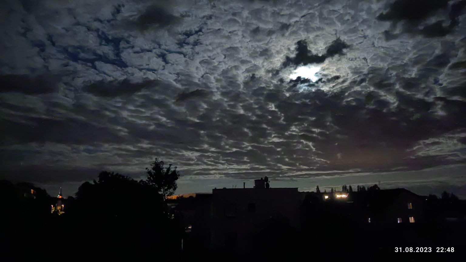 10,9°C, Oblačno. Díky uplňku je velmi jasná noc! Teplota zřejmě klesne pod 10°C...