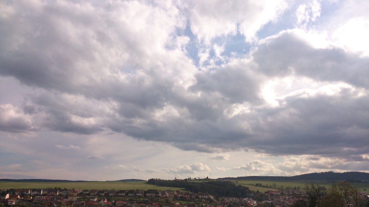 První letošní bouřka, tlak 1011.8 hPa, prší(0.9 mm/h).
