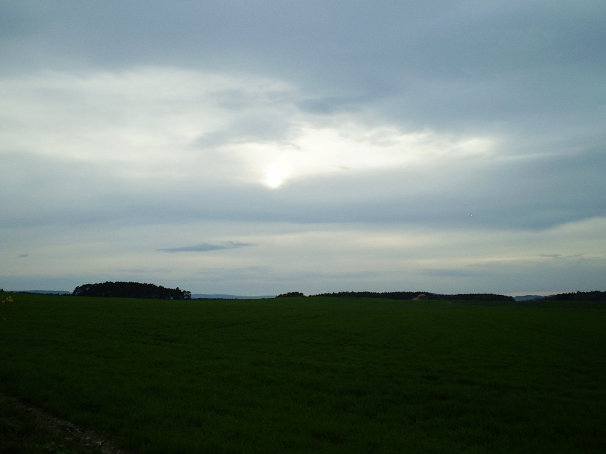 Vlhkost 60%, tlak 1014.0hPa setrvalý stav, slabý vítr. Protrhávání oblačnosti za frontou nastává už i v Praze, zatím ale částečné.