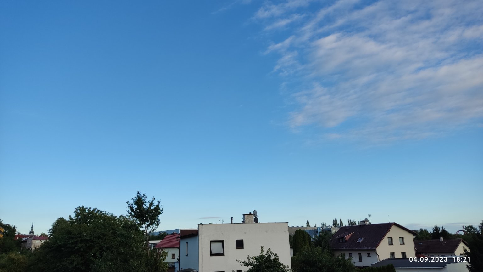 Skoro jasno, trošičku vysoké oblačnosti. Vítr do 1 m/s. Vlhkost 48%. Max T dnes 26,3°C