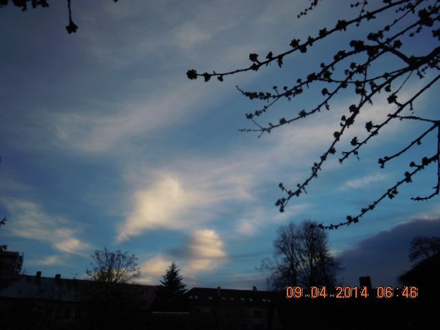 Oblačnost 95,3%, zákl.oblačnosti 1315,91m, tlak 1017,7hPa, dohlednost 30km, vlhkost 66,6%, čerstvý ZSZ vítr 301° 9,3m/s(5 Bft), poc.teplota 1,11°C, rosný bod 0,11°C(obsah vody:4,724g/m3), tepl.mraků -1,21°C. Při večerní bouřce spadlo 5,8mm vody.