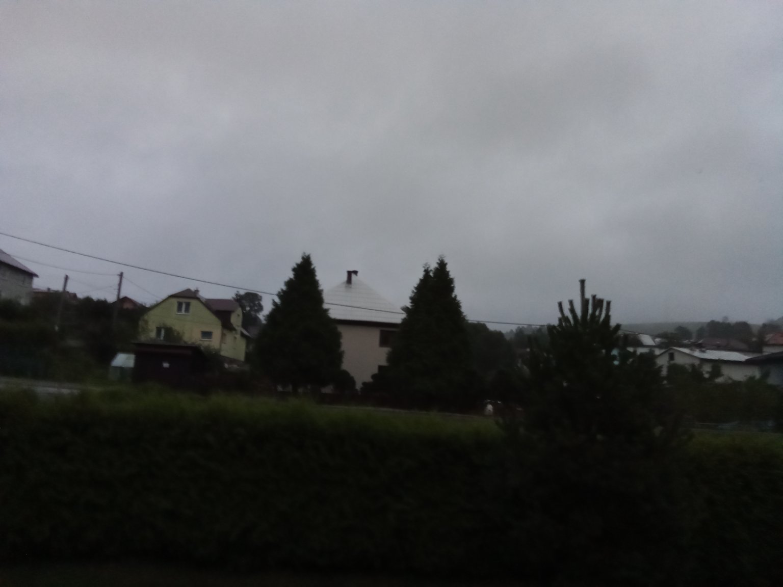 19°C, Vzdálená bouřka. V dálce se sem tam blyskne, začina foukat.