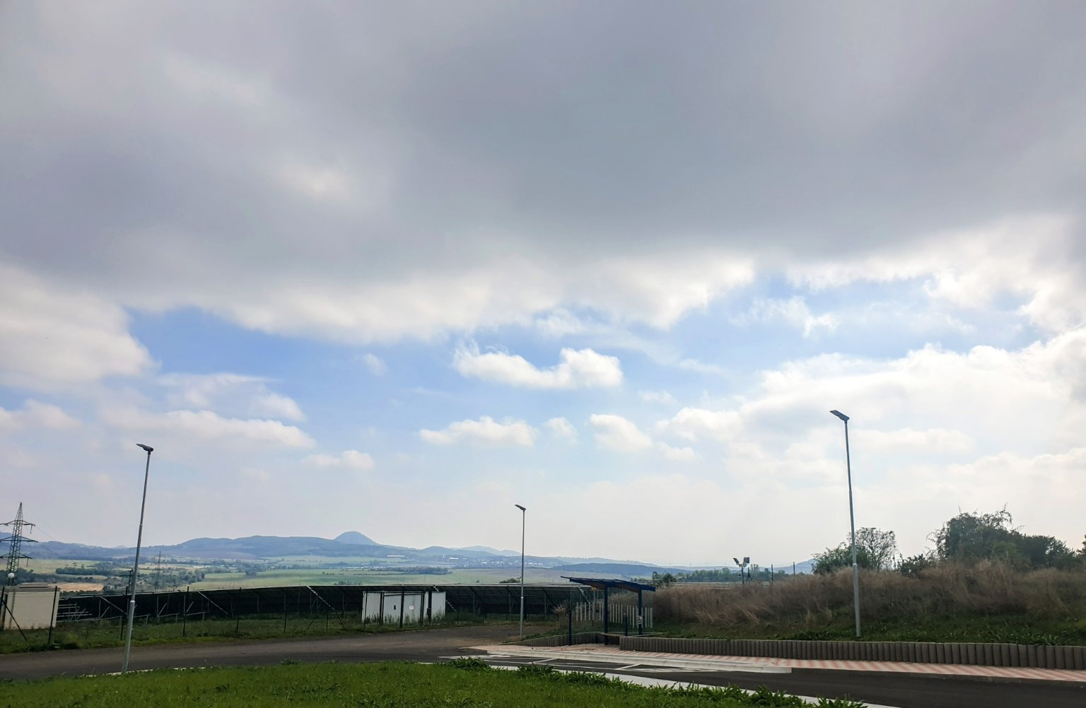 -°C, Oblačno. Oblačnosti přibyva. Nevím proč to dává tu panoramu v tak blbe kvalitě, když to ma 36,4 Mpx...