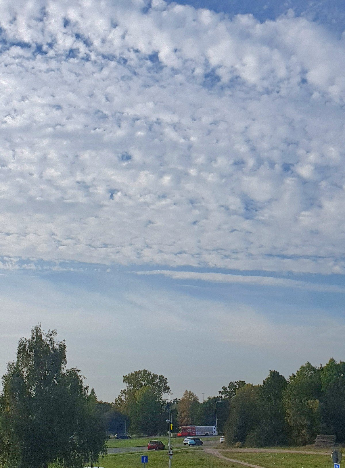 Aktuálně převažuje většinou polojasno až skoro jasno altocomulus a fouká většinou vánek