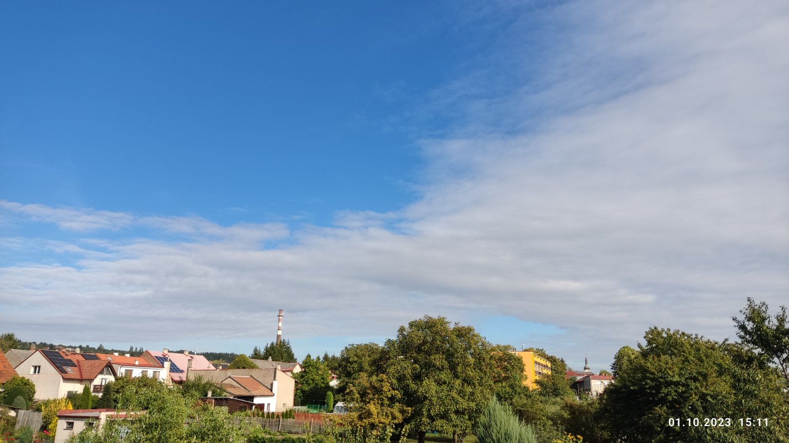 V dálce na jihovýchodě i lehce vlnovitá oblačnost nad Brdy