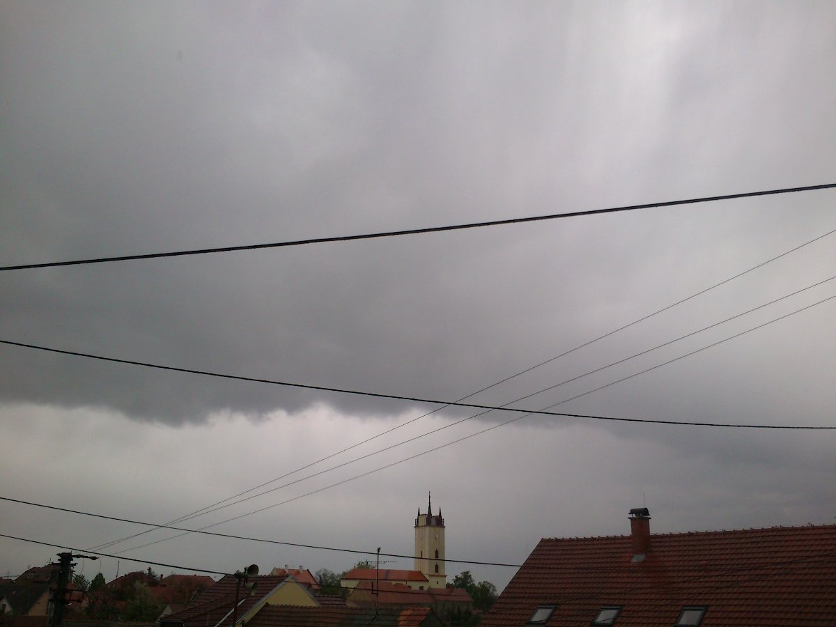 Po přeháňce,při které padaly krupky,se utišil vítr na slabý,a oblačnost se protrhala.Tlak 1008hPa,vlhkost 71%
