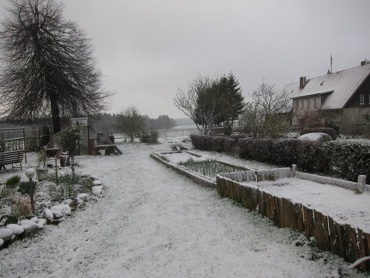 Slabě sněží.Poprašek se drží hlavně na autech a střechách.