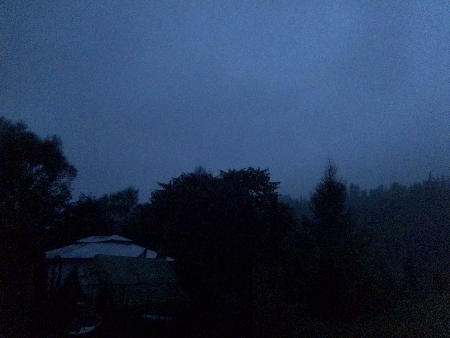 6,6°C, Slabý až mírný dešť. Mlhavý a šery Radvanov.