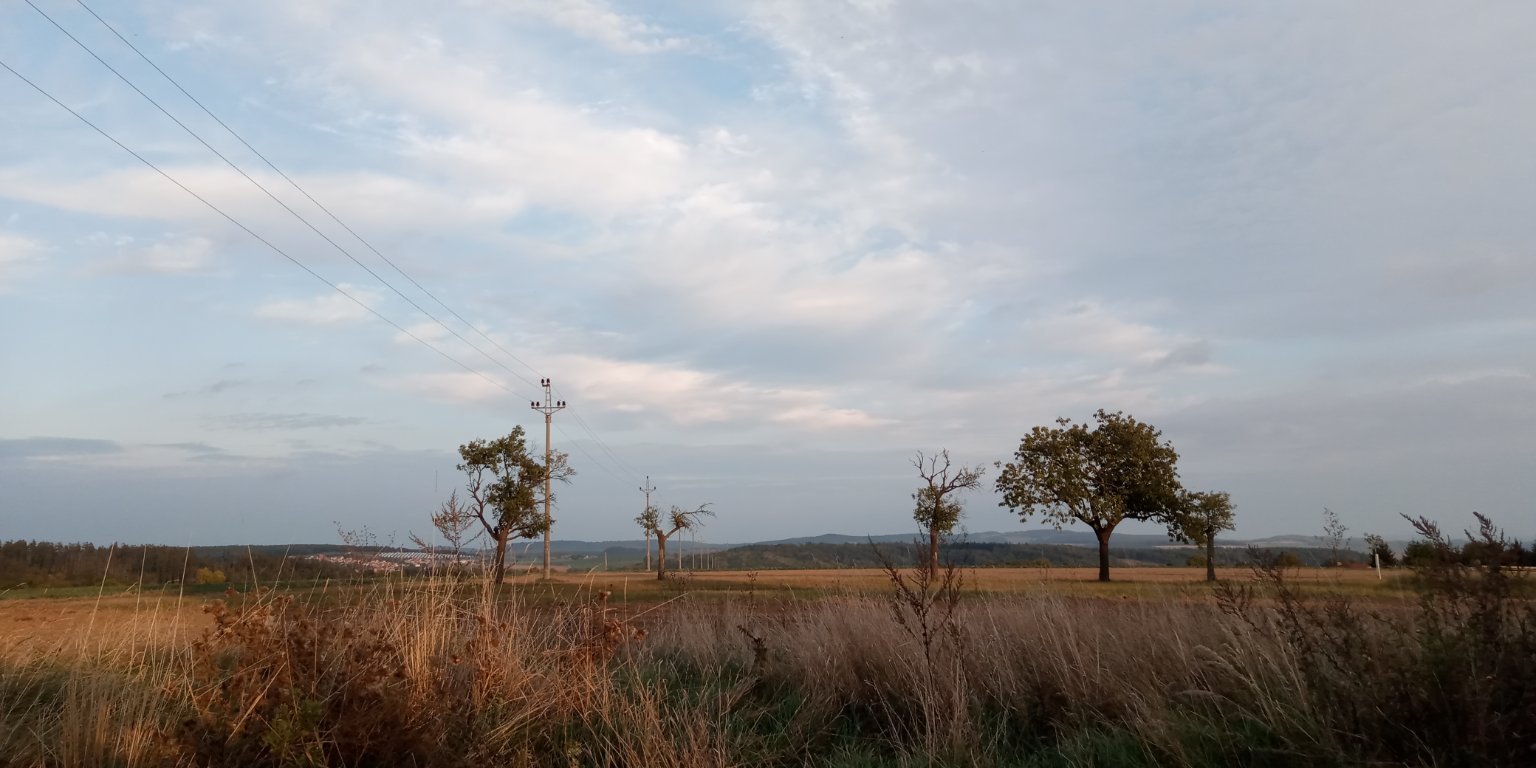 Oblačno 5/8 Ac, klidno, u nás ani kapka, přeháňka šla kolem