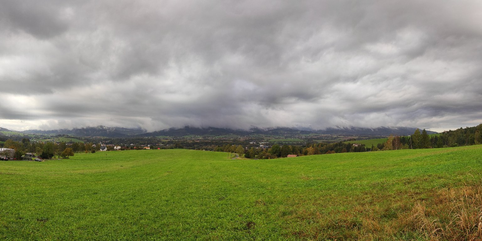 7,3°C, Zataženo až oblačno. Kozubová a Ostrý jsou zakryté Stratem.
