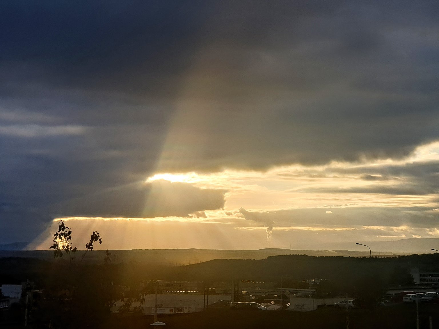Výhled na Velký Javor z Plzně (ve vzduchu již není tolik prachu a studený vzduch má méně vlhkosti - dohlednost je tak velmi dobrá).