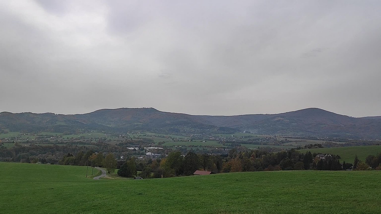 15,2°C, Zataženo. Kopce už jsou díky listům zbarvené do žlutooranžove barvy