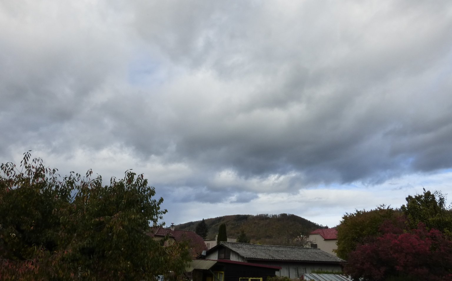 Tlak 993.4 hPa / vlhkost 99 % / Z vítr 2.2 / 3.6km/h / srážky 1.5mm / solární záření 35 W /m2.