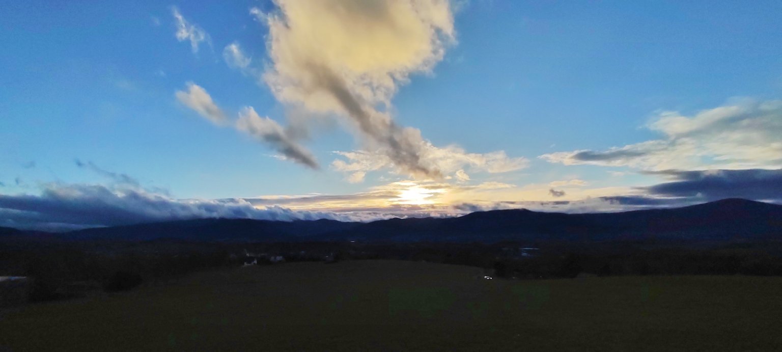 Blíží se vydatná přeháňka, čerstvý v nárazech silný JZ vítr. Teplota: 12.3°C, Vlhkost: 75%, Tlak: 986.5 hPa (stoupá). Srážky: 0.4 mm.