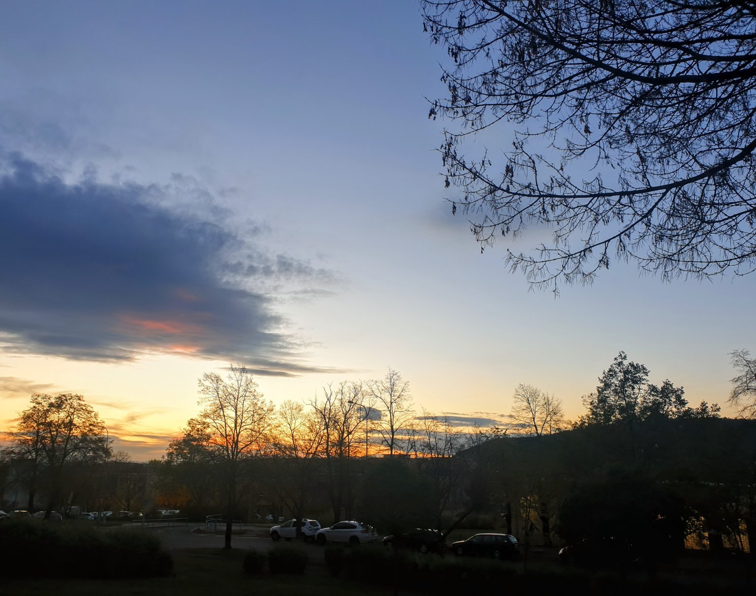 Skoro jasno, západní vánek, tlak 1008 hPa.
