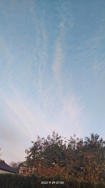 Růžové ráno, velmi slabý přízemní mrazík. Polojasno až oblačno, bezvětří. Min T dnes 1,2°C