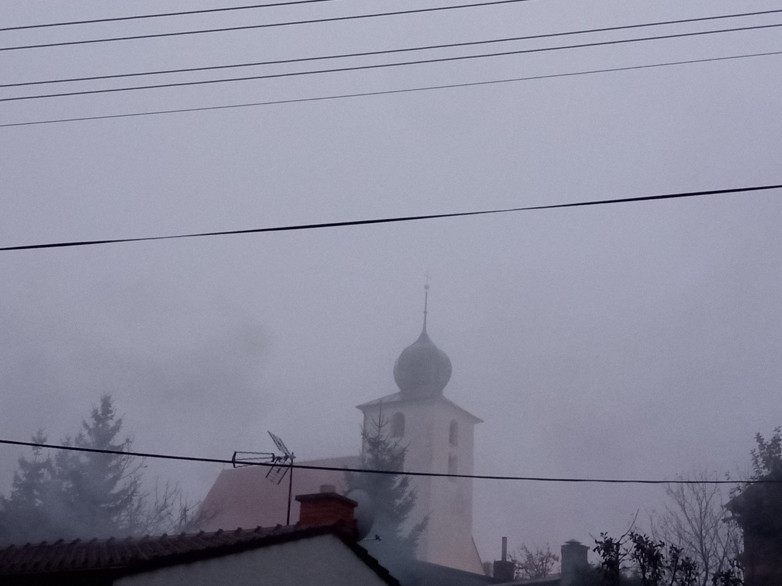 Zataženo, slabý déšť, zatím dnes 1,8 mm. Bezvětří, kouřmo