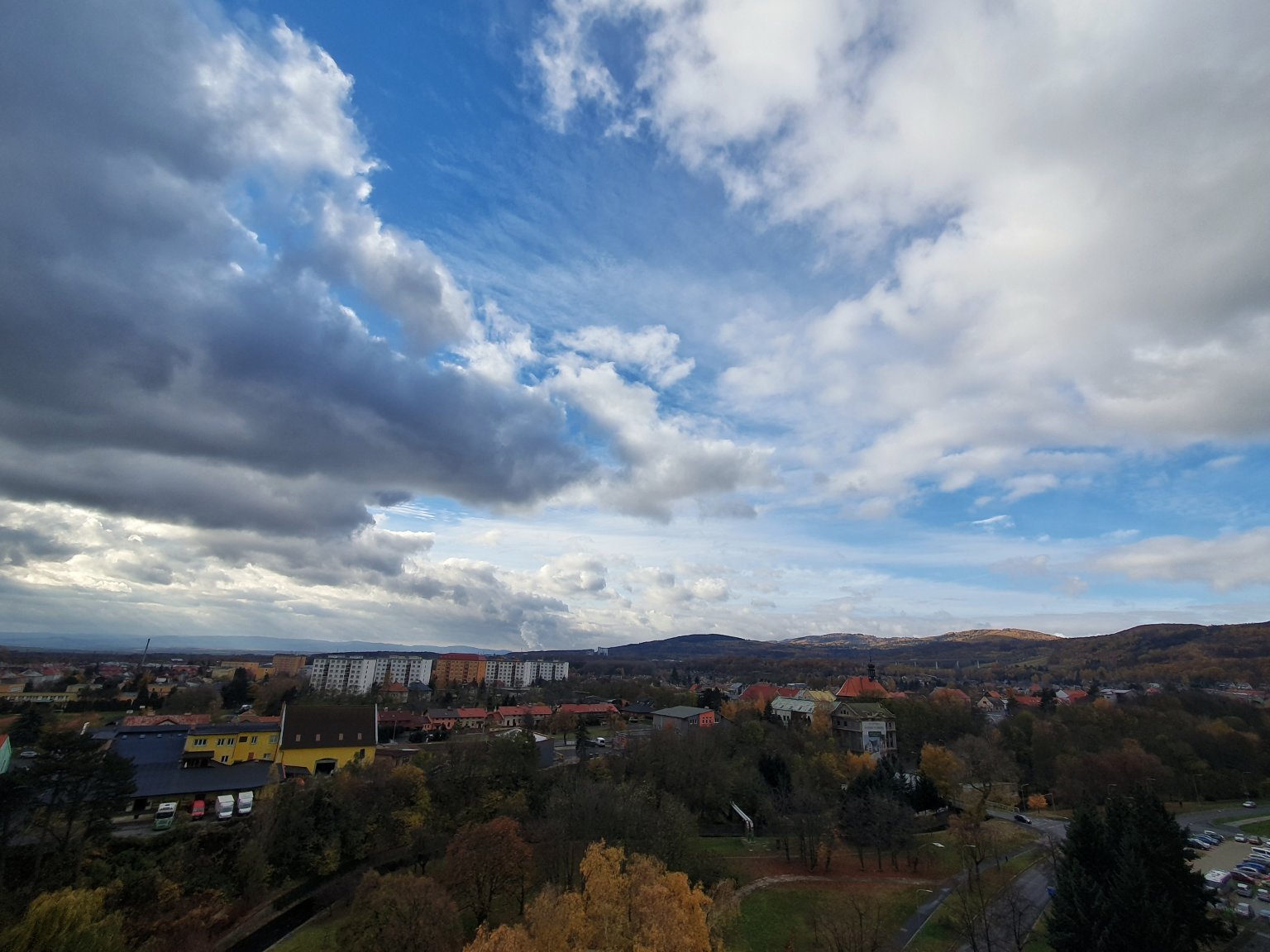 0,8°C, Mírne sněženi, Sníh: poprašek. Už je to lepši.