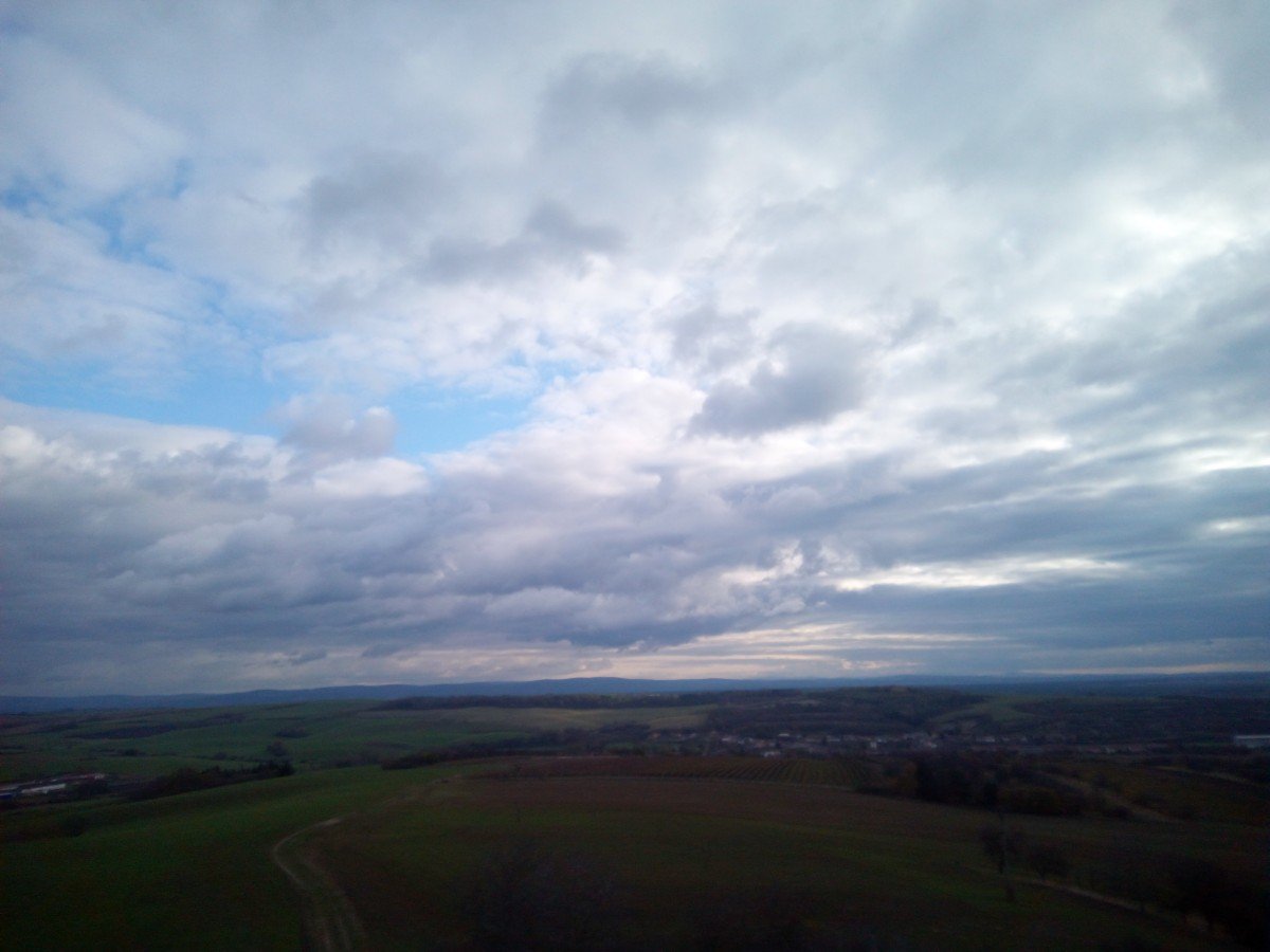 0,7°C, Slabé sněženi, Sníh: poprašek. Začaly padat sněhove krupky.