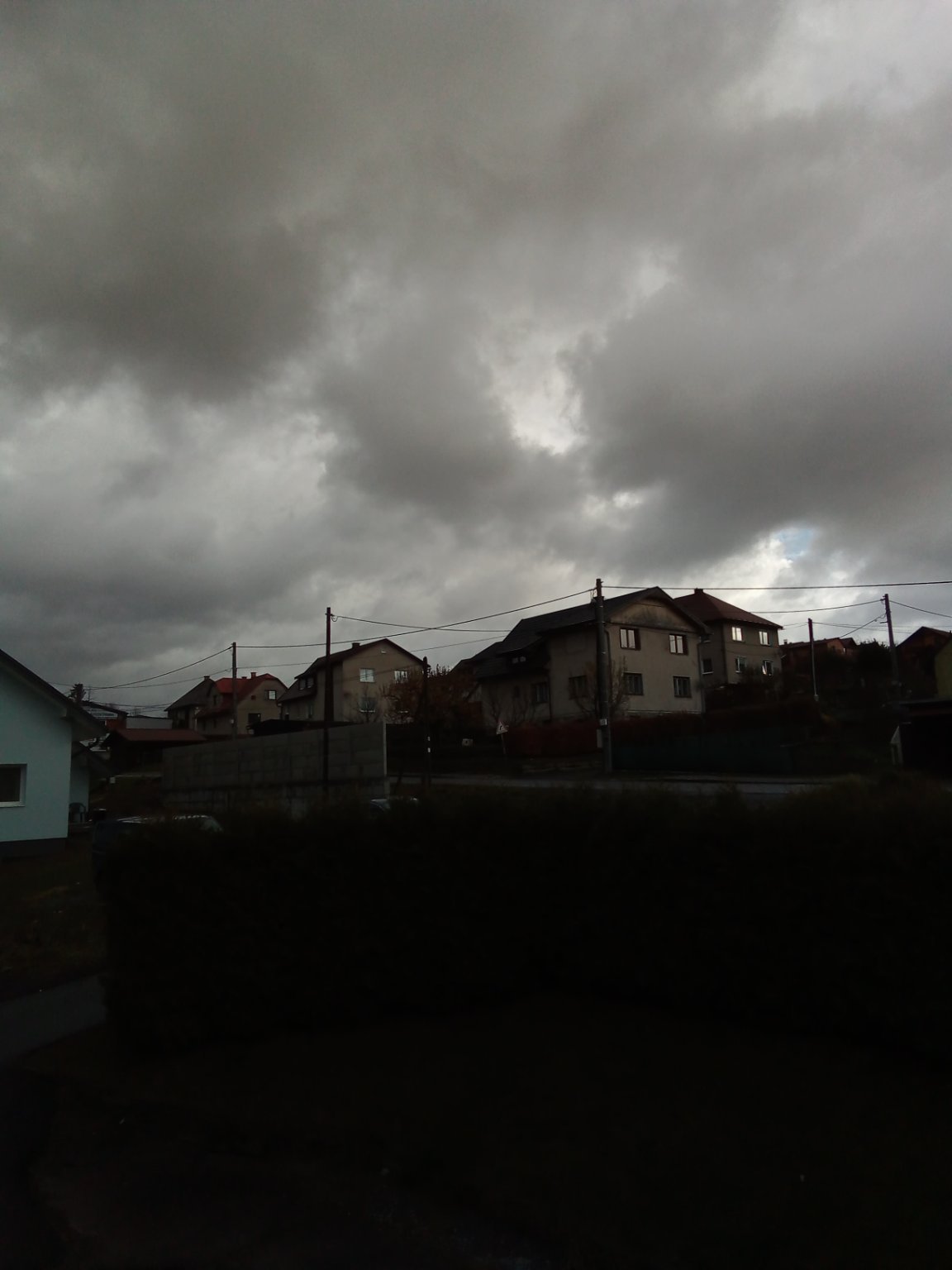 Čerstvý vítr, dešťová přeháňka přešla ve sněhovou přeháňku.