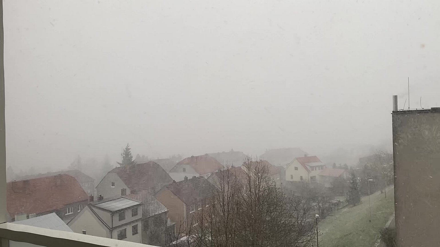 Prudká přeháňka (sněhové krupky), SZ vítr 8-11 m/s.
