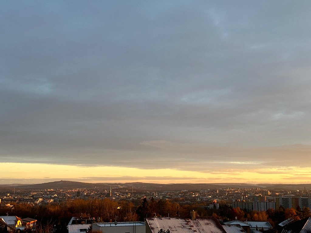 -3,3°C, Mírne až silné sněženi, Sníh: 12 cm. Krasně sněži.