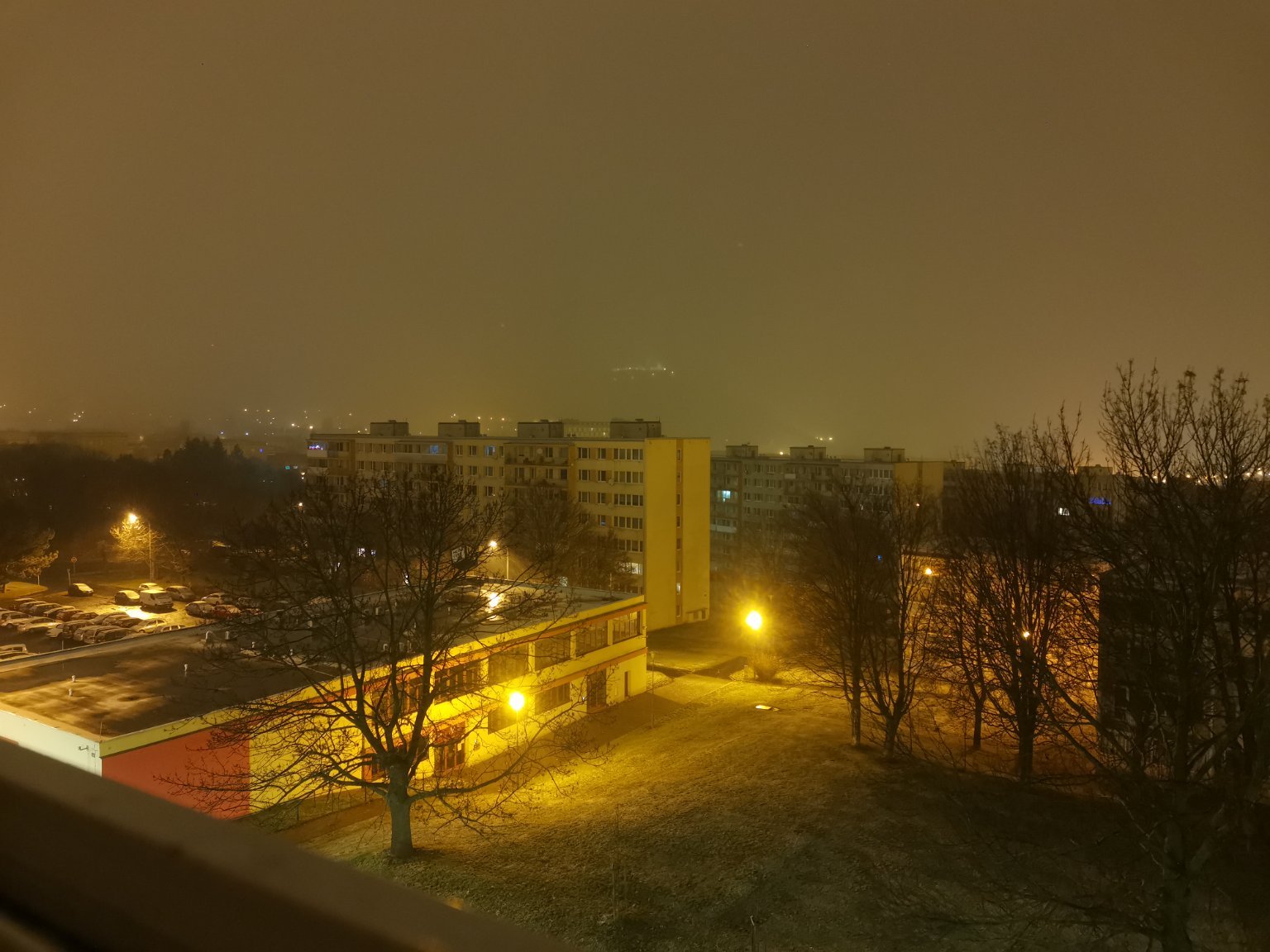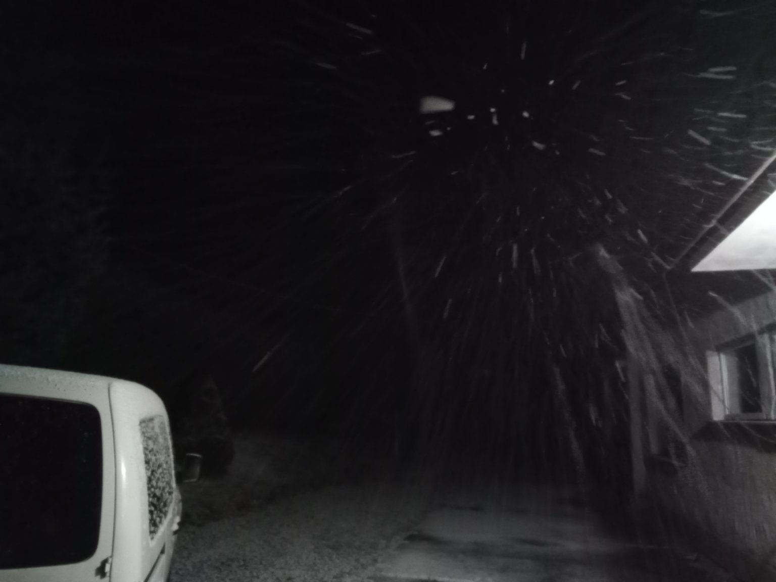 Silná sněhová přeháňka, nárazový vítr.