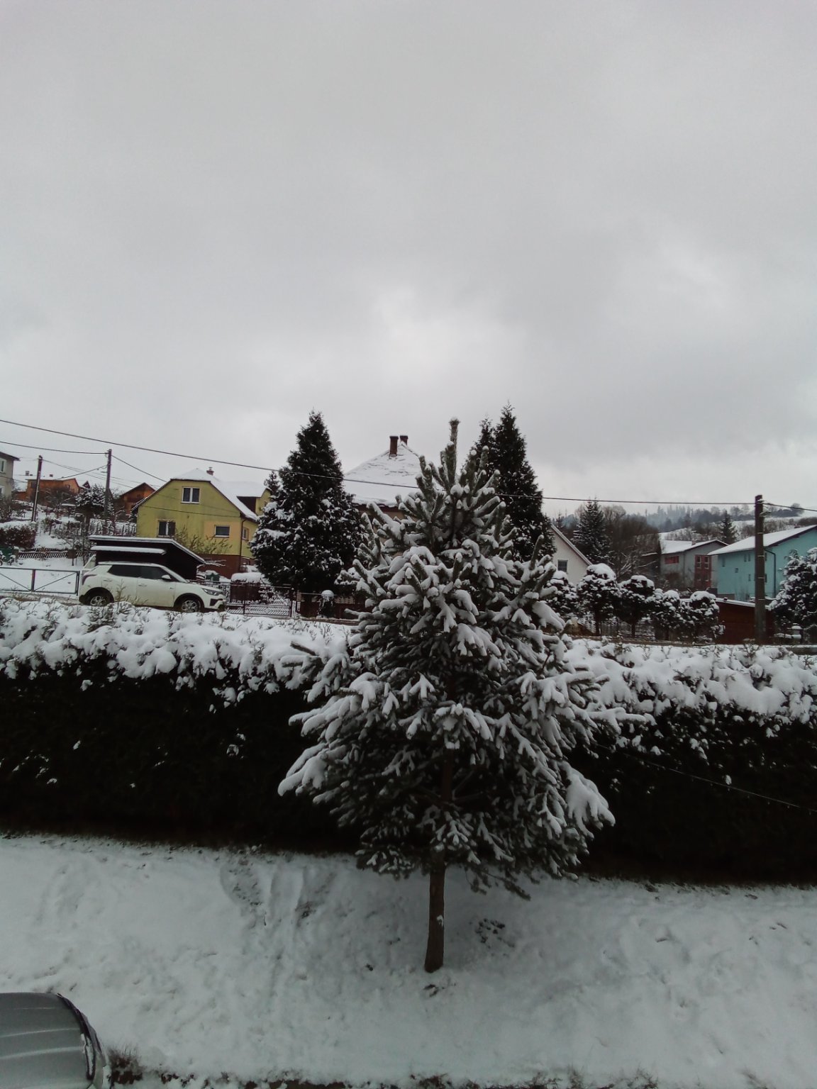 Klidno, zbytky slabé sněh. pokrývky, nejnižší noční teplota byla +0,6°C.