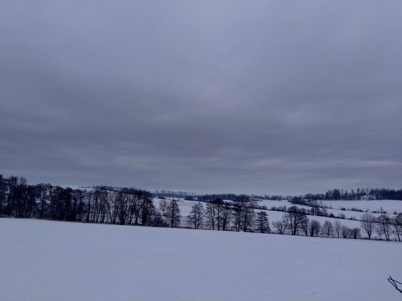 Skoro zataženo, hlavně vysoká oblačnost. Vítr 0,7 m/s J. Vlhkost 95%