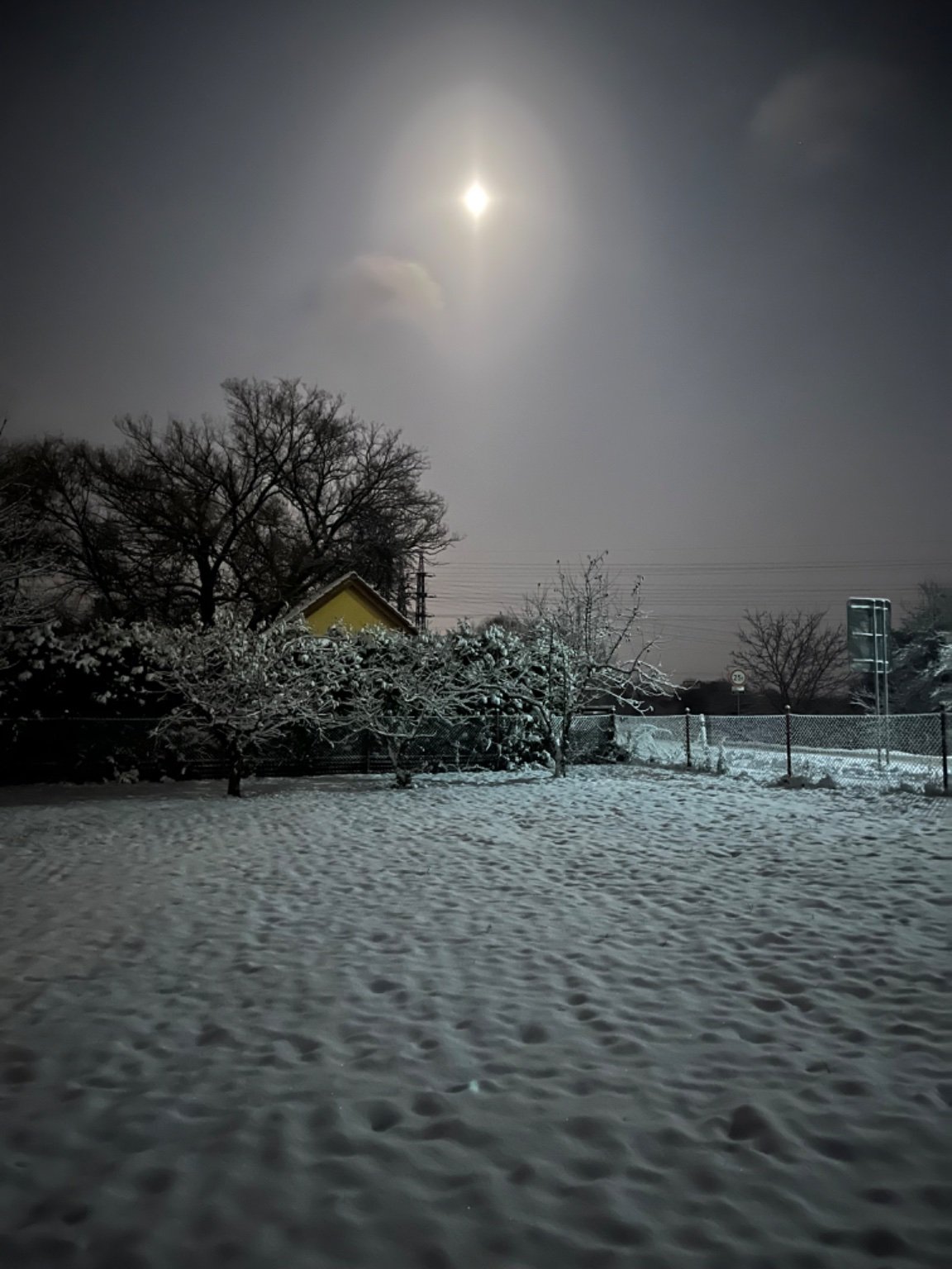 Teplota pozvolna klesá, přitom je jen slabý S vánek a stále krásně sype, vše už je bílé, tráva už téměř schovaná pod na povrchu již nadýchanější peřinou. Na první návštěvu zimy je to nádhera a snad to i nějaký čas vydrží a děti budou i zde moci sáňkovat, stavět sněhuláky atp.