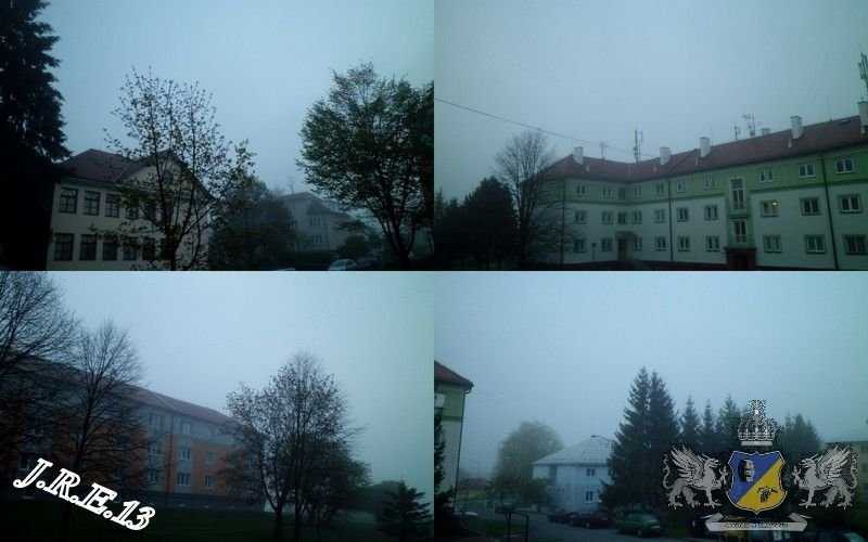 Trochu mlha. Tlak 1019 hPa, vlhkost 95%, vítr SZ.
