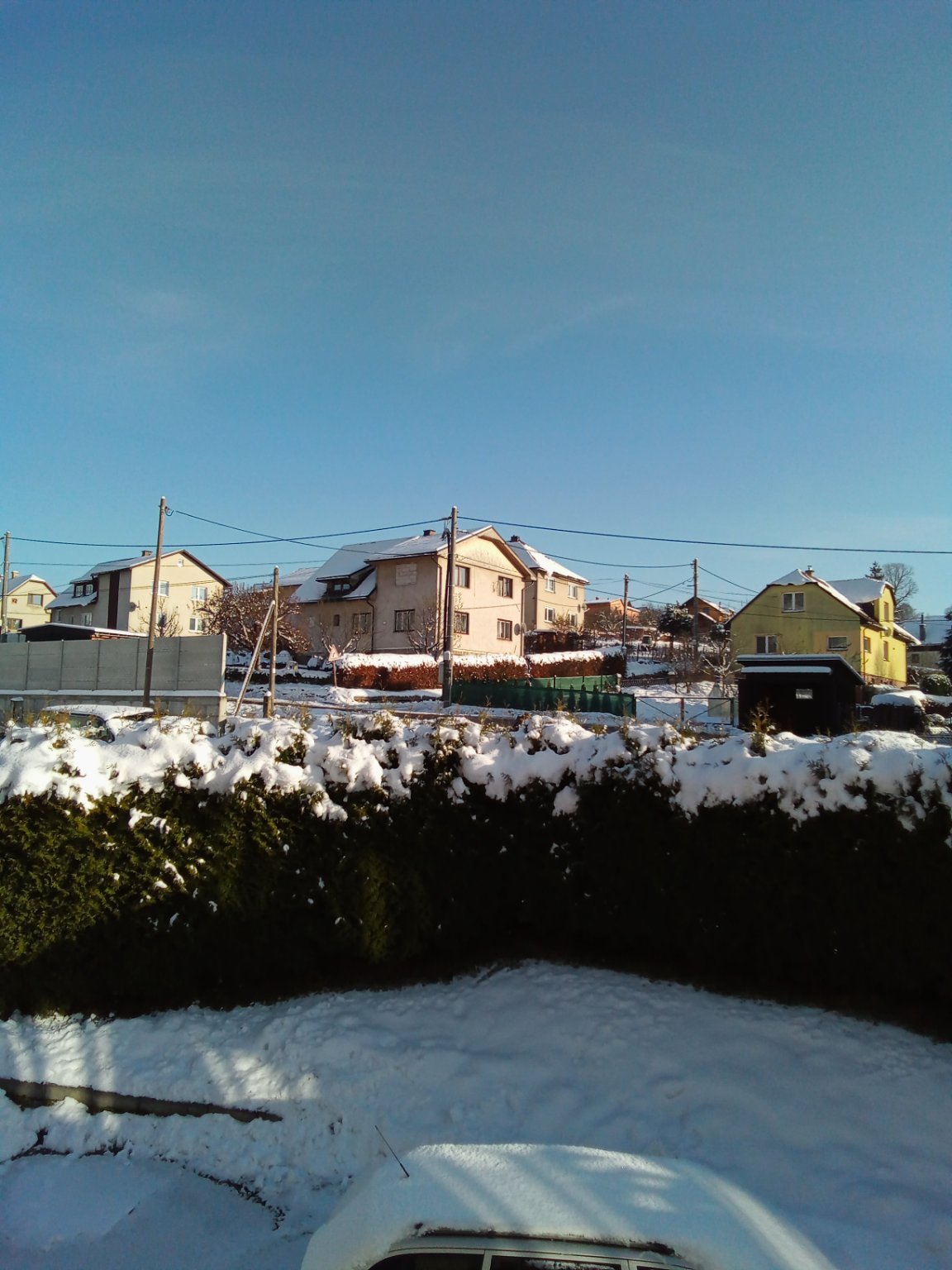 dopoledne sněhové přeháňky, v zástavbě výška sněhu v průměru kolem 2cm i méně... mimo zástavbu 2 až 5cm , min. -4°C