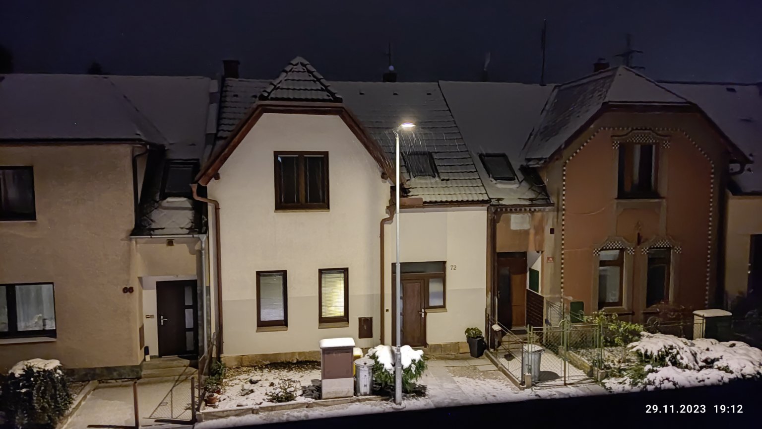 Slabé sněžení, tlak 1005 hPa, vlhkost 87%