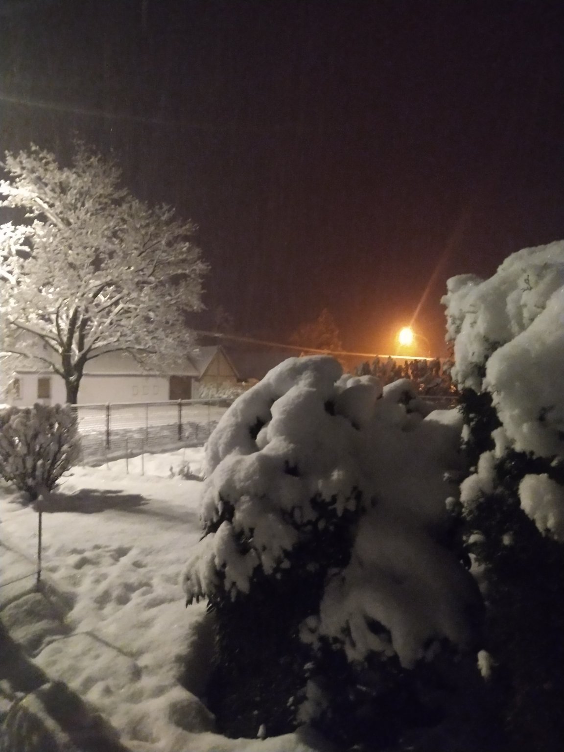 Aktuálně převažuje většinou zataženo a silné trvalé a vydatné sněžení ještě 1 fotka před spaním, dokazuje že ráno to bude síla, fouká většinou vánek až slabý vítr
