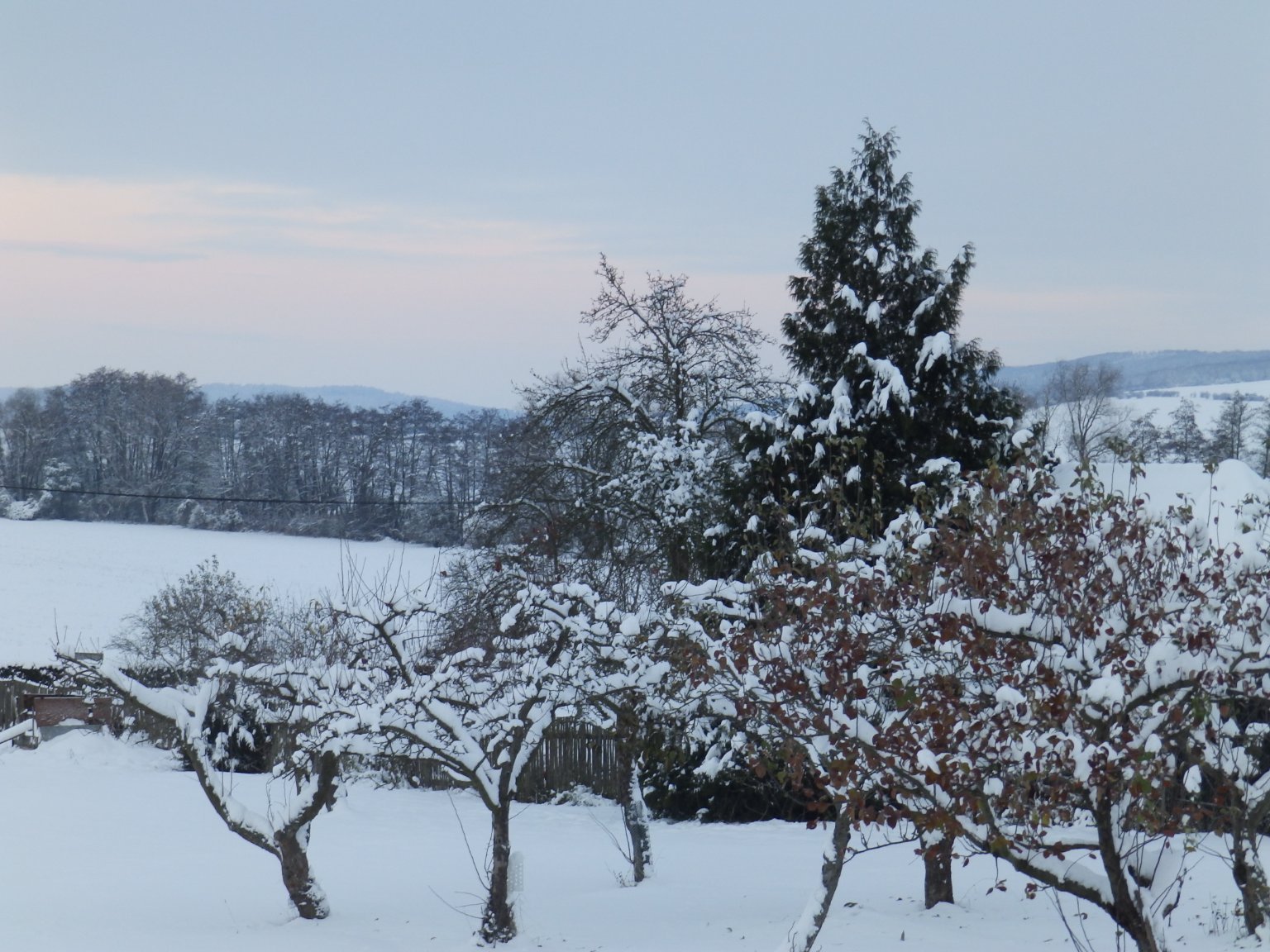 Sněží, oblačnost 100%, tlak 1014,11hPa, poc.teplota -10,71°C, tepl.ros.bodu -5,90°C, rel.vlhkost 94,1%, abs.vlhkost 3,17g/m3, mírný SSZ vítr 337° 4,21m/s(3 Bft), včerejší průměrná teplota -1,83°C.